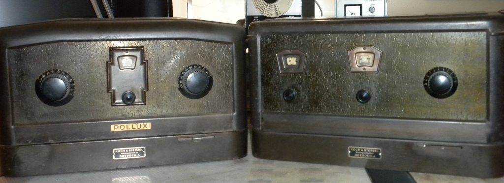 Eine Ergänzung meiner Sammlung sind die beiden funktionsfähigen 2-Kreiser POLLUX und KASTOR von der Fa. Koch & Sterzel AG Dresden/Übigau. Dadurch, dass Ende der 1920er Jahre die Radioentwicklung bei K&S eingestellt wurde, wechselte die dortige Entwicklunsabteilung unter Leitung von Herrn Günther zur Fa. Mende. Seitdem erscheint auf den Menderückwänden "System Günther".